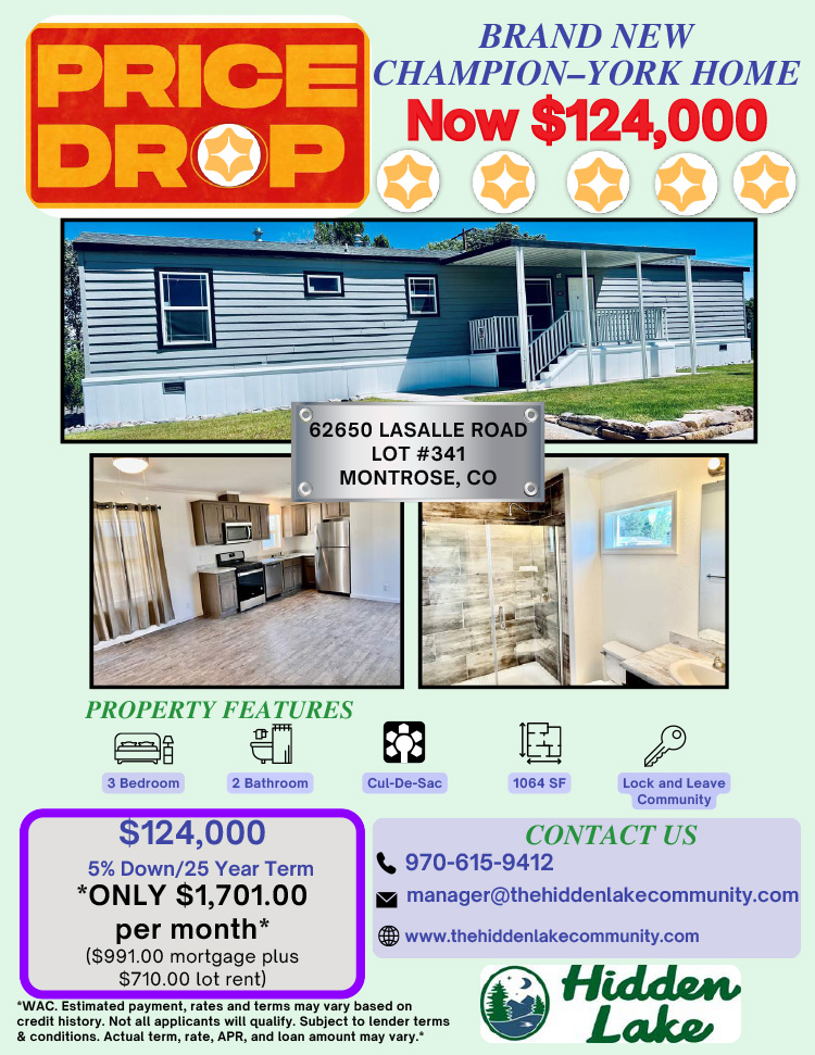 Lot #341 – Hidden Lake Manufactured Home Community, Montrose, CO