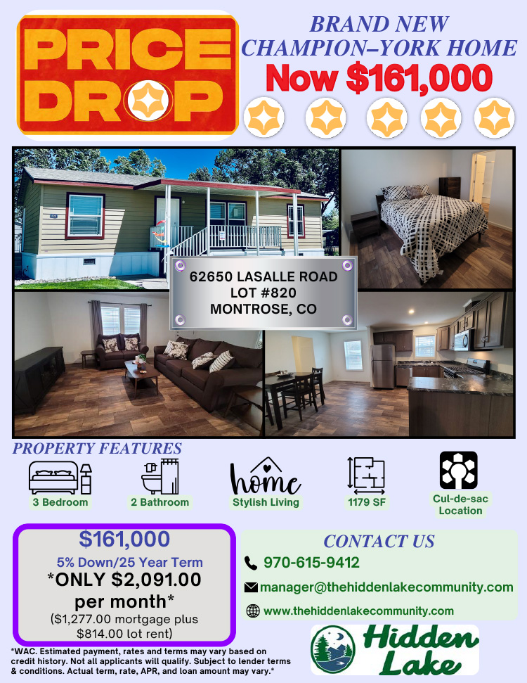 Lot #820 in Hidden Lake is a brand-new Champion-York home offering 3 bedrooms, 2 bathrooms, and 1,500 square feet of stylish living. This cozy, move-in ready home is tucked into a peaceful cul-de-sac within one of Montrose’s most scenic and amenity-rich communities. It’s ideal for first-time buyers, downsizers, or anyone seeking a low-maintenance lifestyle with modern comforts.